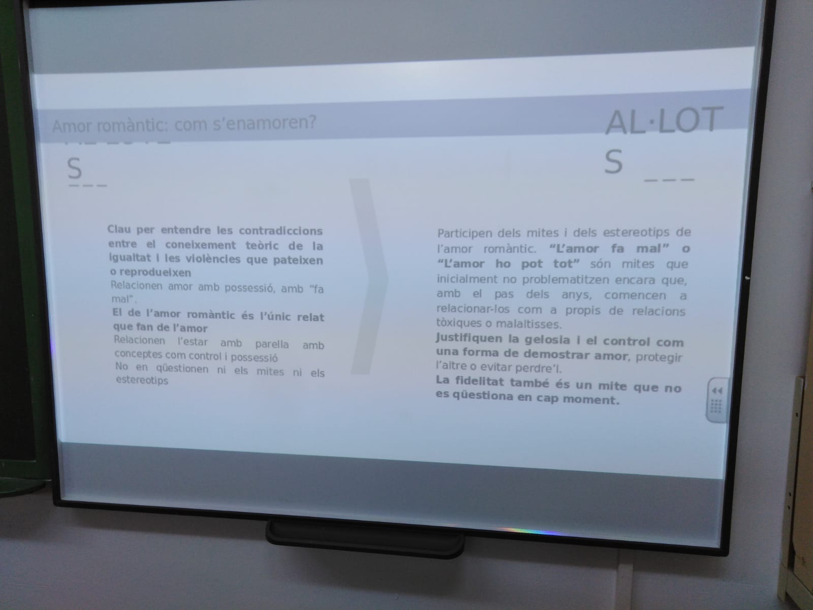 Na Catalina Gayà, autora de l'estudi en relació a l'amor romàntic i l'adolescència ha presentat i compartit les seves conclusions amb el grup de 3r ESO D que va ser part de la mostra d'estudi al nostre centre. Aquestes conclusions ens duran a fer diferents reflexions en relació als nostres models de comportament. Moltes gràcies.