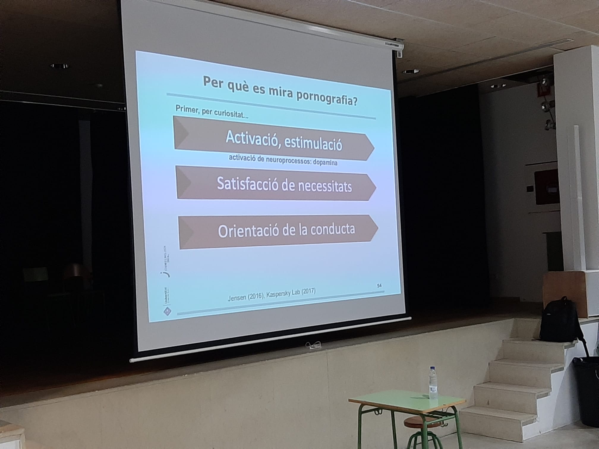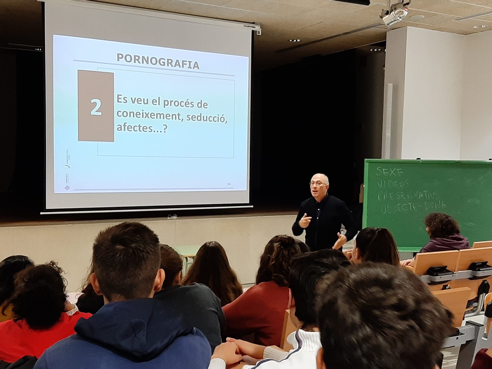 L'alumnat de 4t. d'ESO i 1r. de CFGM ha pogut gaudir de la xerrada del professor de la UIB, Lluís Ballester Brahe, doctor en Sociologia i Filosofia, investigador de gran prestigi en diferents àmbits i que ens ha presentat les conclusions d'una de les seves darreres publicacions "Nuevas pornografías y cambios en las relaciones interpersonales". Així, els hàbits d'ús de la pornografia en els joves i adolescents, les implicacions d'aquest ús, el paper de la indústria pornogràfica en la falsificació dels models de relacions de parella i de la pròpia sexualitat i la influència d'això en la creació dels imaginaris col·lectius han estat alguns dels temes tractats, amb dades reals i amb les conclusions extretes d'aquestes dades que ens mostren unes relacions bastant directes entre el consum de pornografia i alguns dels problemes en relació a la violència masclista.