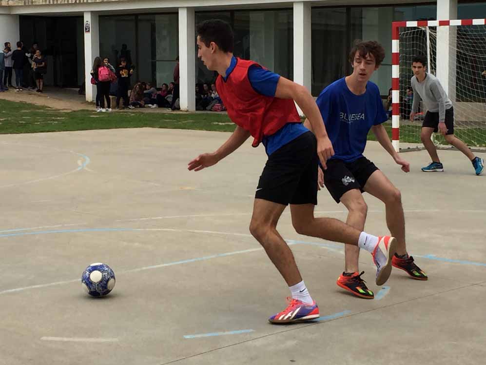 Els torneigs esportius que estan tenint lloc aquestes setmanes al temps d'esplai, dins el projecte Activa't al Pati estan oferint un espectacle realment interessant i ja són molt els espectadors (alumnes i professors) que acudeixen en temps d'esplai a veure els partits de futbet i bàsquet. Aquests es troben actualment en fase de lligueta, fins d'aquí unes setmanes no sabrem quins són els equips que es classifiquen a les següents rondes. Hem fet un petit reportatge d'alguns encontres, segur que gaudireu d'algunes de les espectaculars imatges i vídeos que donen una idea del bon nivell de joc i de com de disputats han estat els partits fins ara.