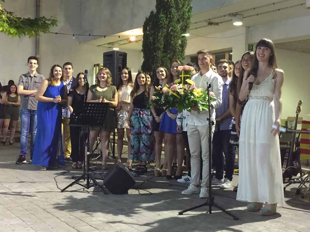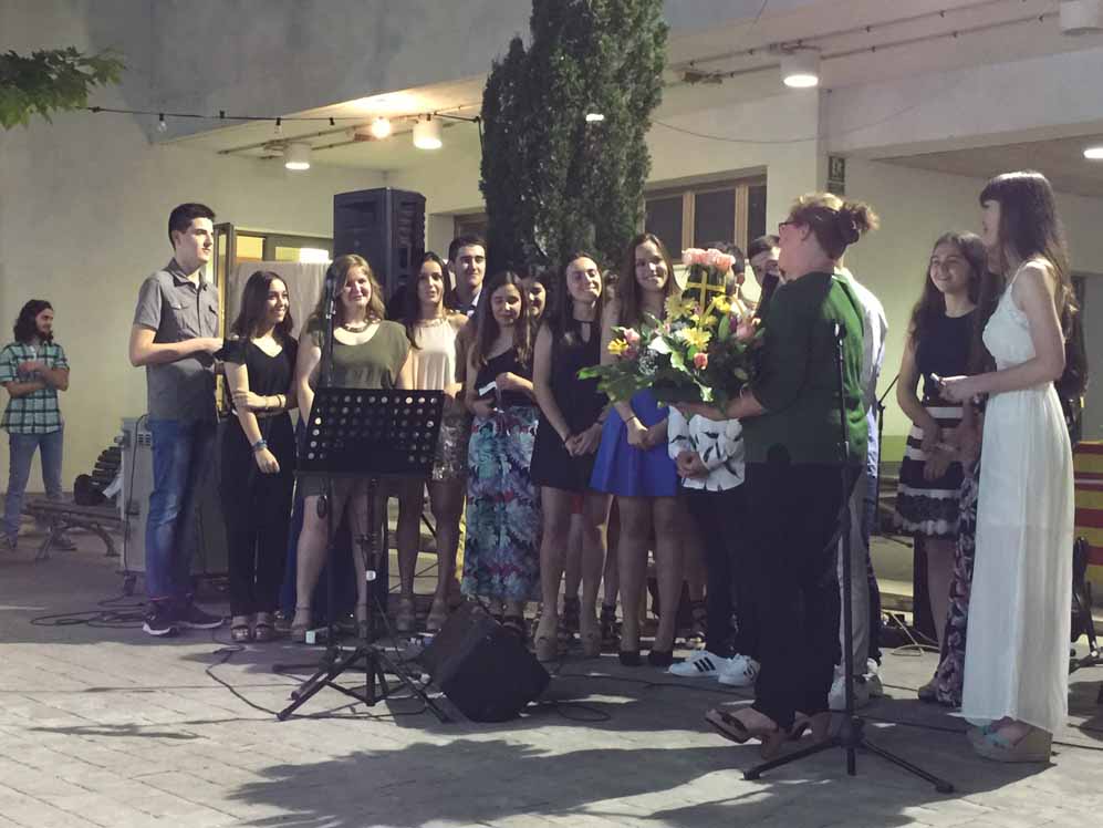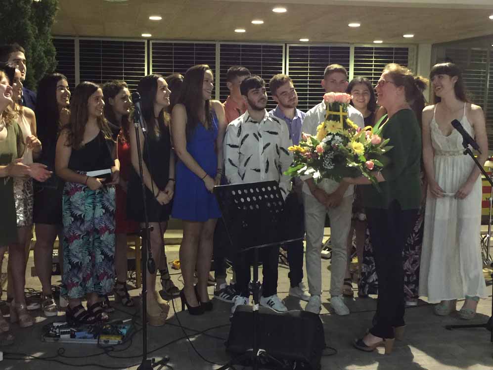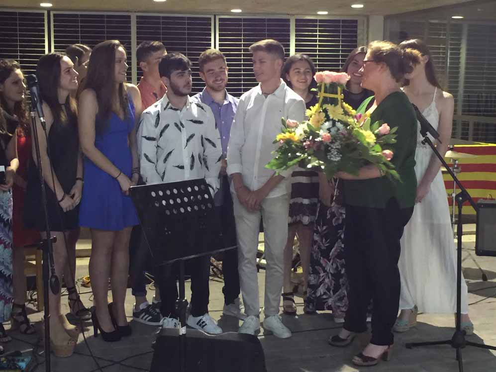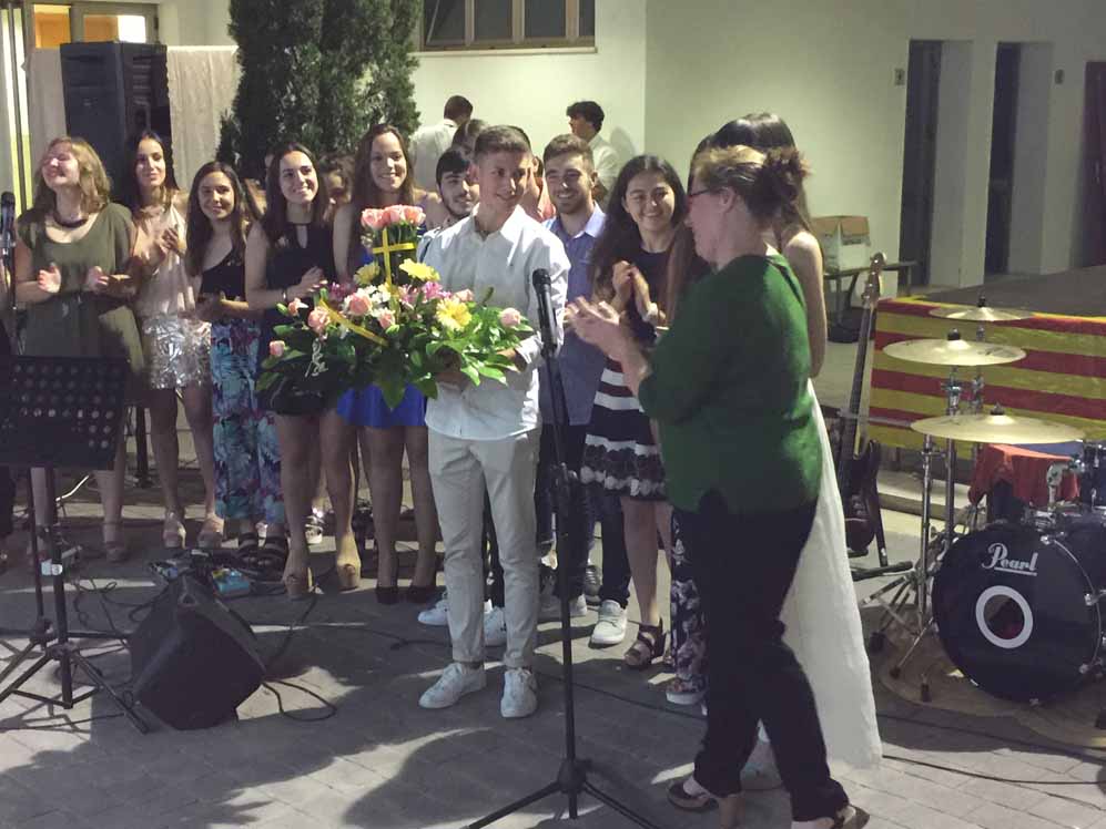 2n de batxillerat és un curs especial per diverses raons: és el darrer que els nostres alumnes viuen al centre, és un curs molt exigent, carregat d'emocions diverses. També és un curs diferent pel seu calendari, condicionat per l'examen de selectivitat i que acaba al mes de maig. Tradicionalment el centre acull per aquestes dates un sopar de comiat en el transcurs del qual es lliuren diplomes, es fan parlaments, regals i actuacions musicals. En aquesta ocasió els alumnes van tenir un detall molt especial amb Isabel Ribes, una professora de biologia molt estimada que el curs vinent deixarà el nostre centre. Et desitgem uns vents favorables en aquest nou període lluny de Sineu, Isabel, sempre tindràs un espai a ca nostra!.