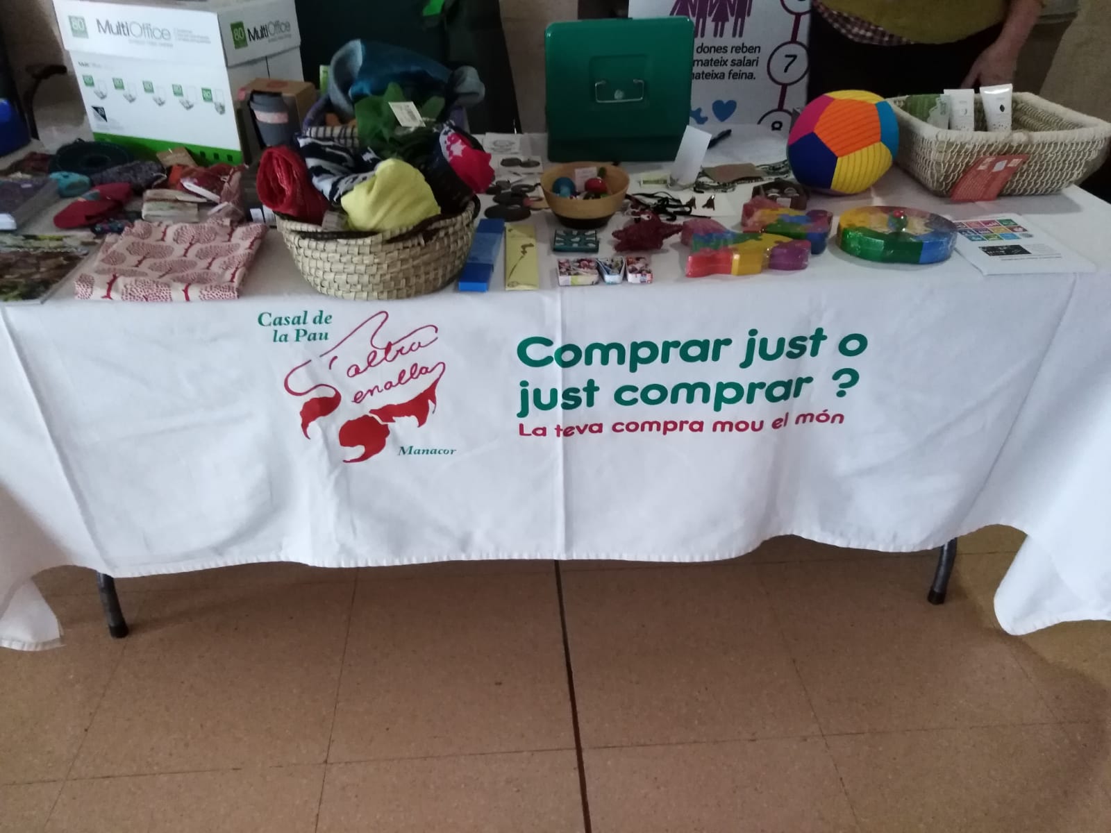 Enguany no serà una excepció. Per primera vegada ens trobem amb productes de comerç just al bar del centre i això és una molt bona notícia. A més continuem amb la tasca de difusió mitjançant xerrades i exposicions i torna a obrir la paradeta de comerç just amb l'ajut de S'Altra Senalla de Manacor.