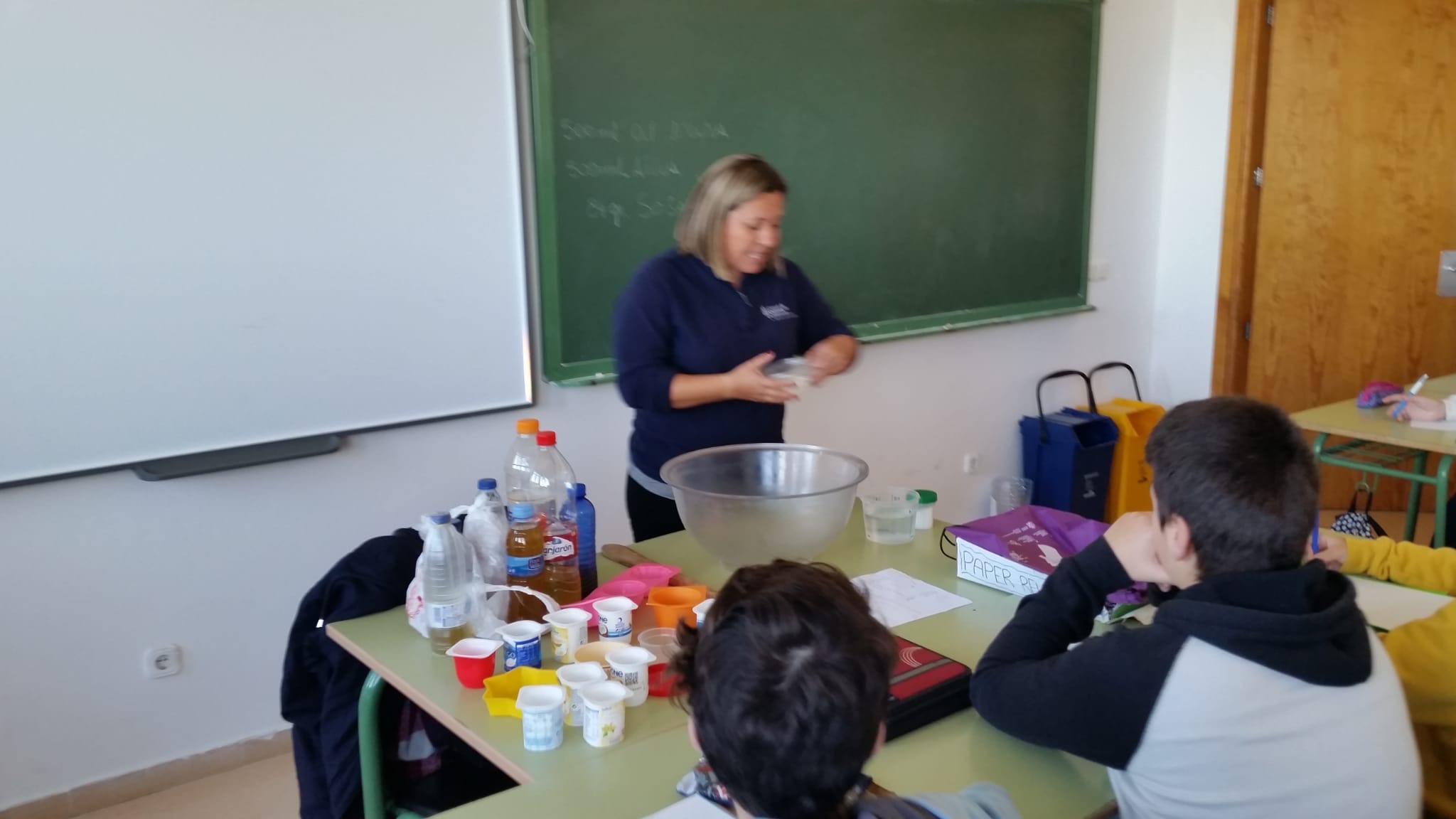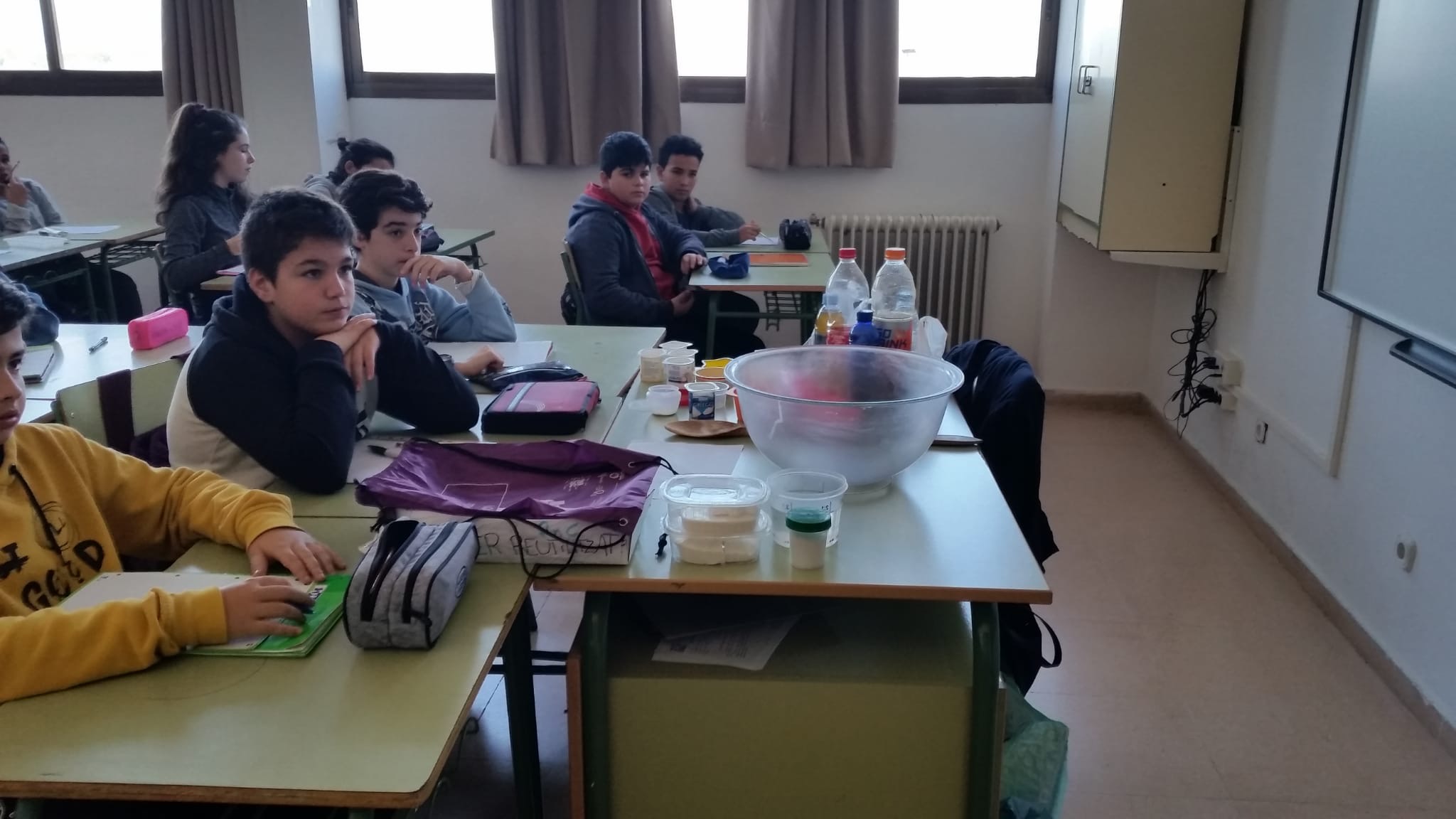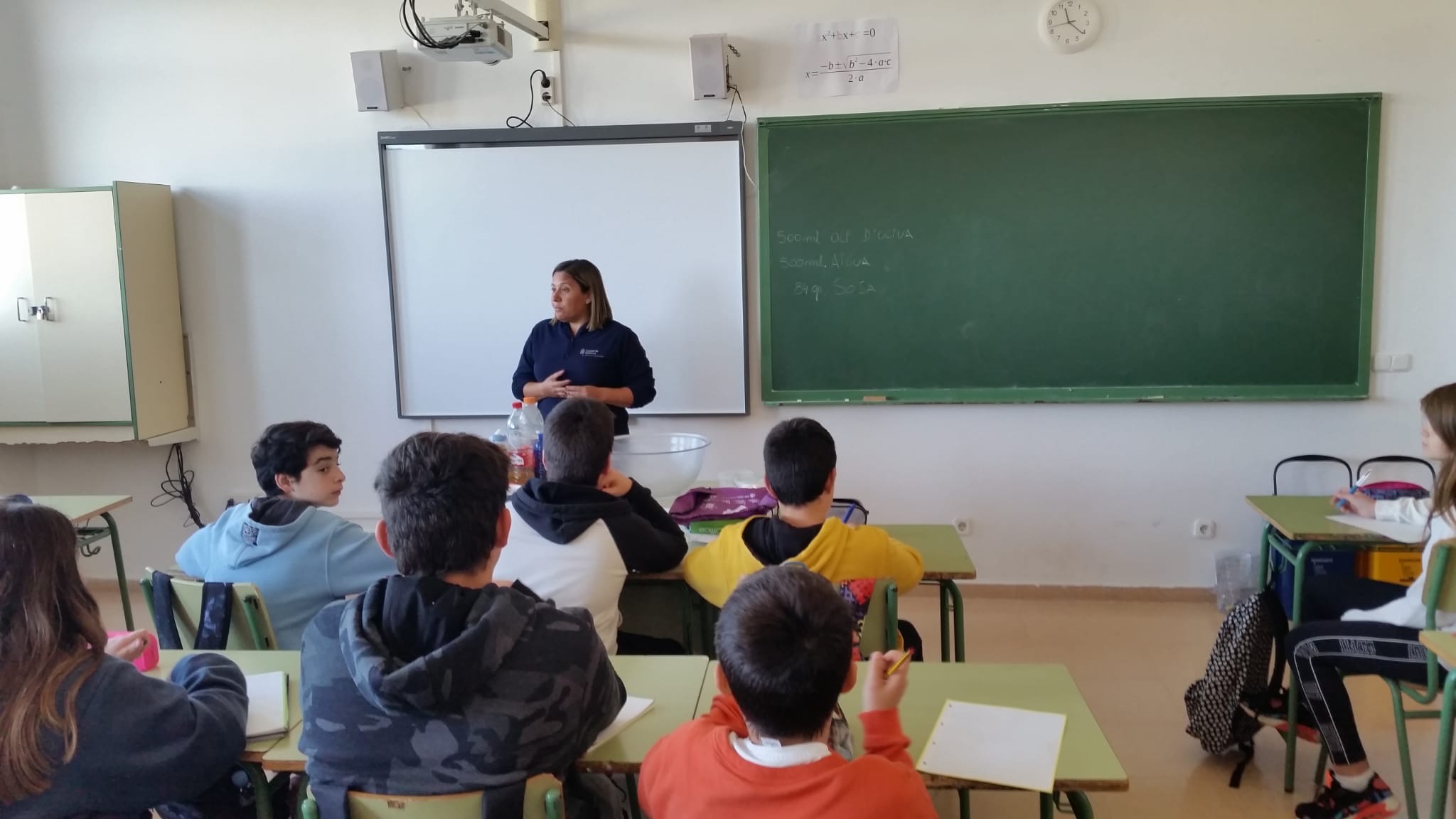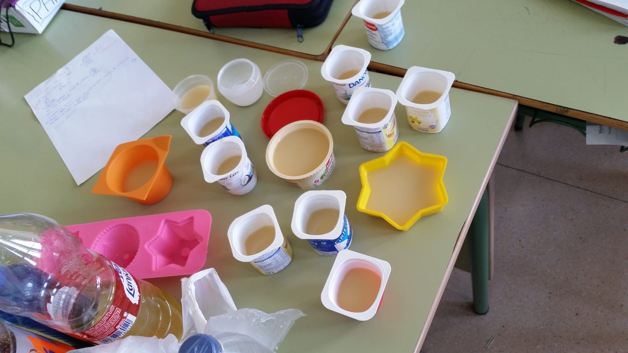 Els alumnes de 1r ESO han realitzat un taller per reciclar oli usat i fer sabó. La tècnica usada ha estat mesclar l'oli que han portat els propis alumnes amb sosa. S'ha produït una reacció química anomenada de SAPONIFICACIÓ. Cada un dels alumnes ha realitzat la seva pastilla de sabó que podrà usar a casa seva.