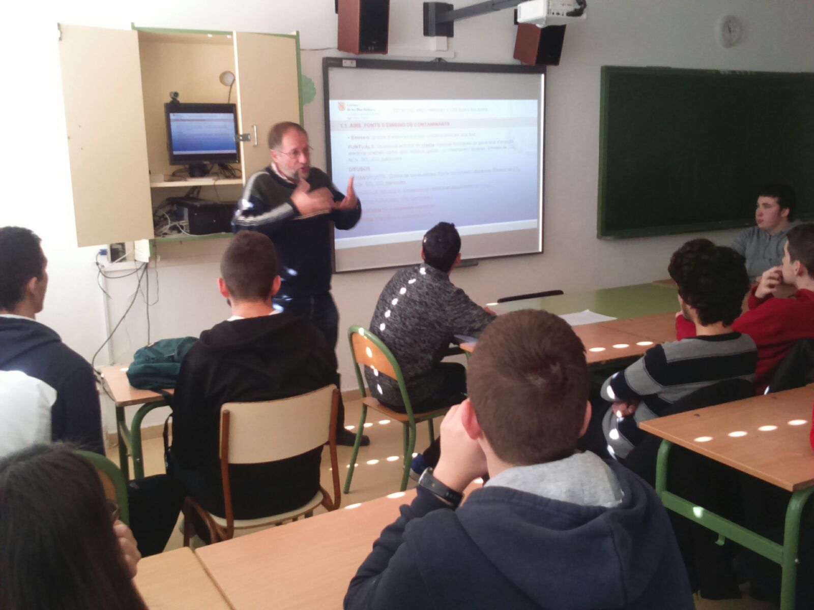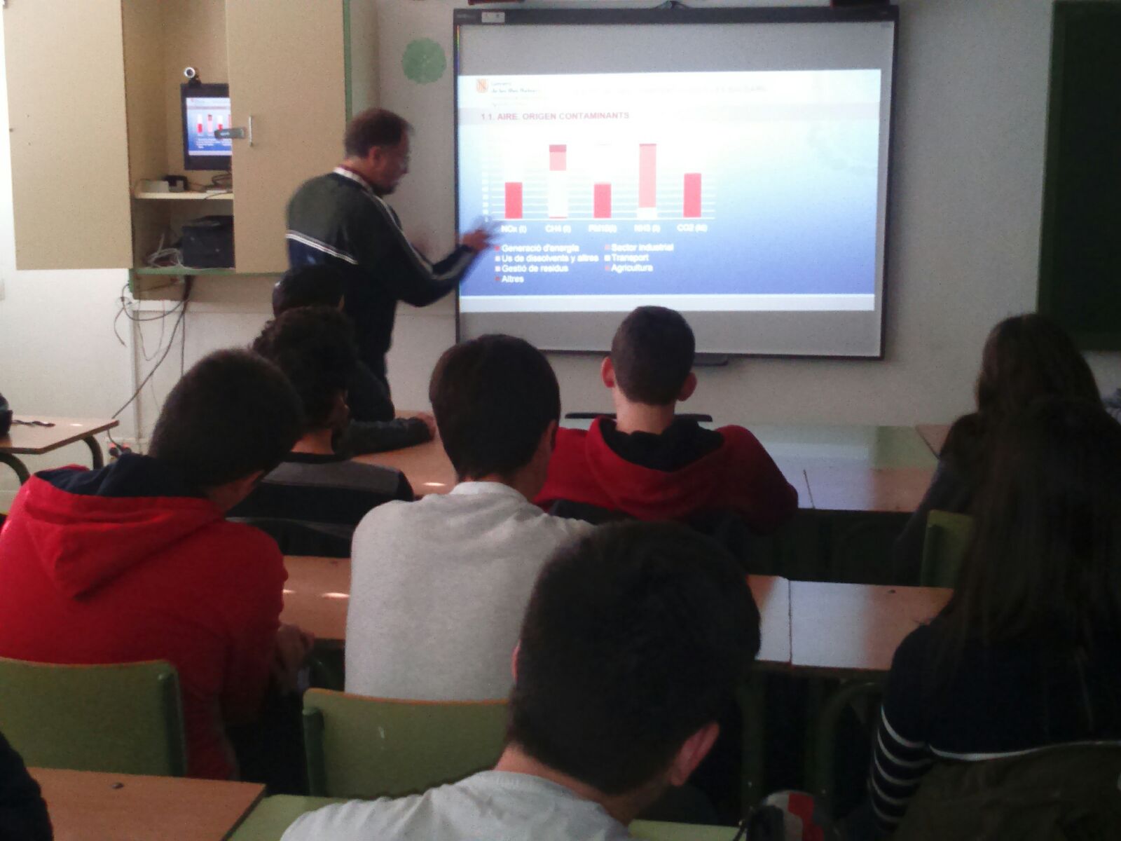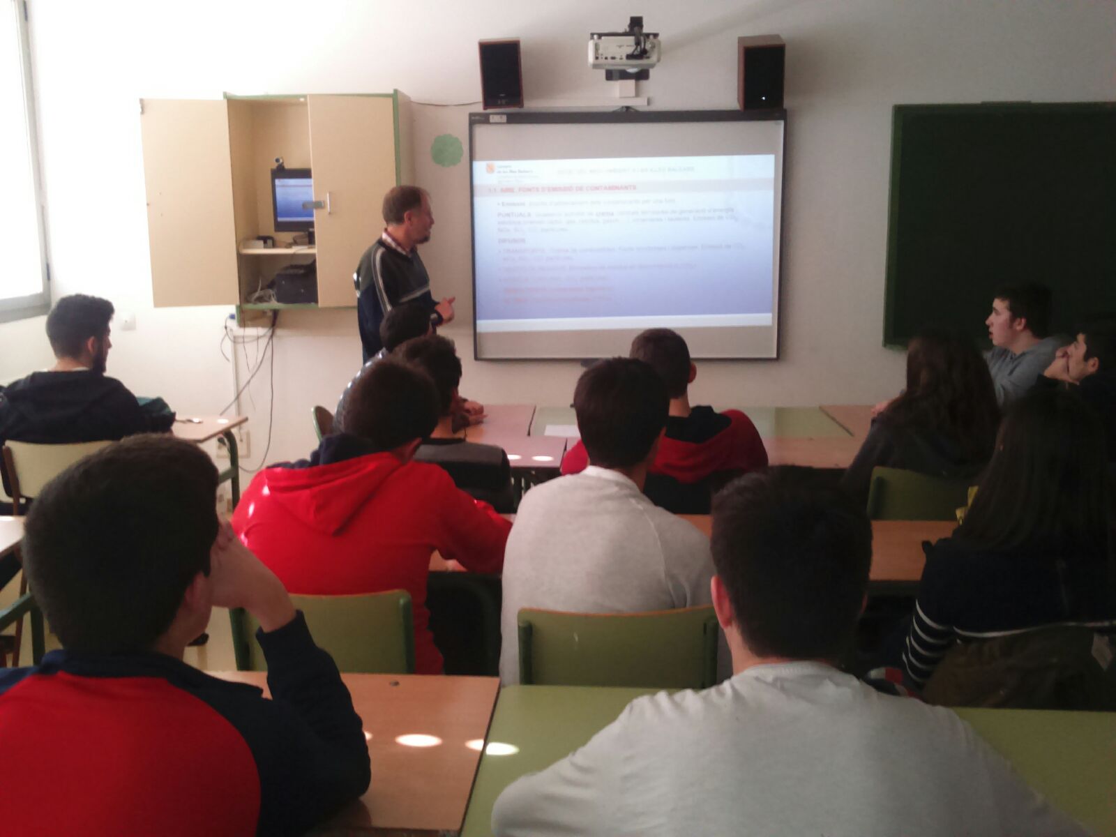 El dia 17 de Febrer els alumnes de 1r de Batxillerat han tengut l'oportunitat d'assistir a la xerrada: l'Estat del medi ambient a les Illes Balears impartida per Martí Llobera de la Conselleria de Medi Ambient. Sovint estudiam diferents problemes ambientals globals i parlam de la necessitat de posar solucions però no sabem exactament quin és l'estat de les Illes Balears envers aquests problemes. Així en la xerrada s'han presentat i comentat dades interessants sobre l'estat de la nostra atmósfera, els recursos hídrícs, l'estat del sòl, l'energia que utilitzam, els residus que generam i com els gestionam, l'estat dels nostres boscos i com afecta la població i sobre tot el turisme estacional en l'impacte ecològic. Tot plegat ens ha donat una visió global i actualitzada de la situació ambiental de les nostres Illes i de la necessitat de preservar els nostres recursos.