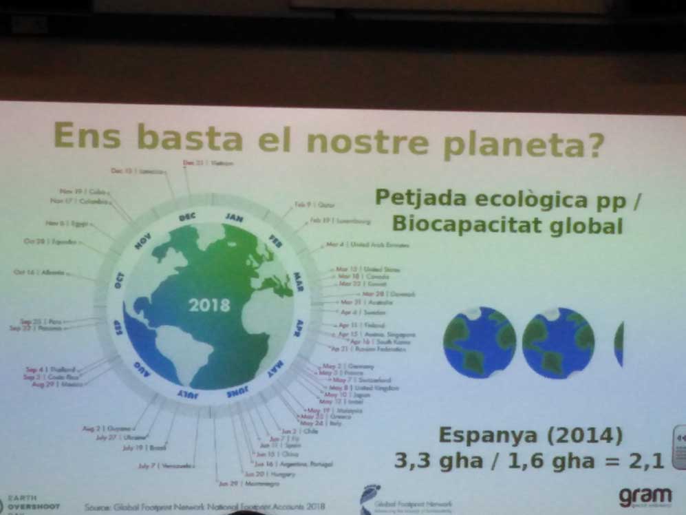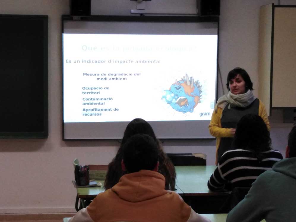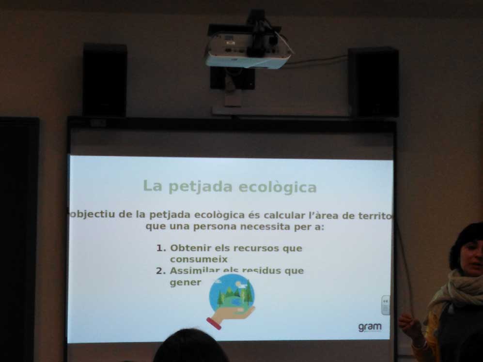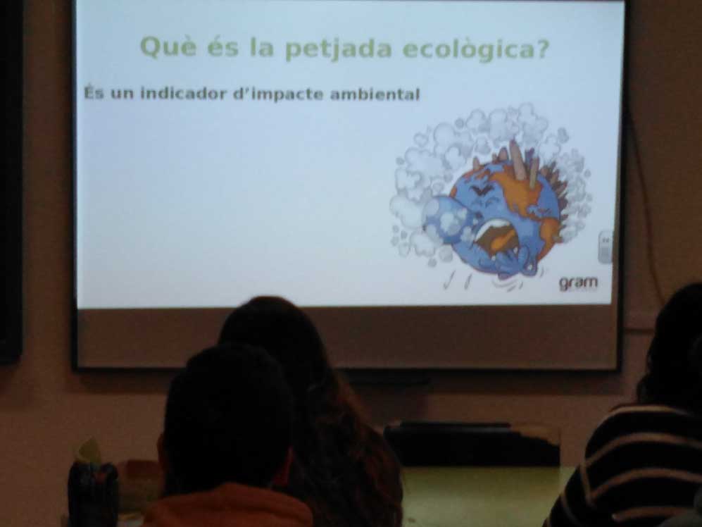 La Comissió Ambiental continua la seva tasca divulgativa i en aquest cas l'alumnat de 1r. de Batxillerat ha pogut qüestionar-se les seves accions en relació al concepte de petjada ecològica. Així, termes com sostenibilitat, capacitat de càrrega, medi ambient, reciclatge, reutilització i reducció ens han fet plantejar-nos quin és el nostre estil de vida i com influeix en el nostre planeta