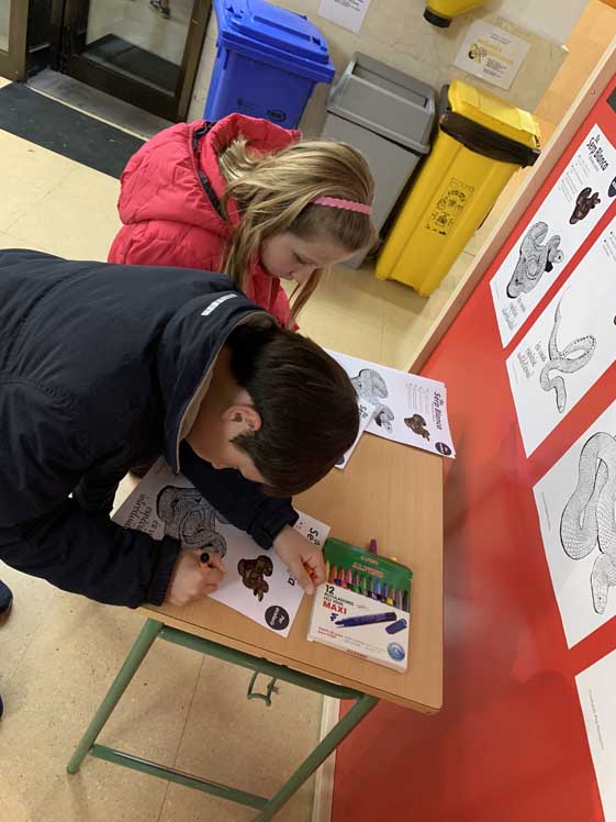 Aquestes alumnes també han confeccionat un full amb dibuixos dels diferents tipus de serps llestos per acolorir, cosa que faran els nins de les escoles de primària adscrites al centre que visitaran l'exposició els propers dies.