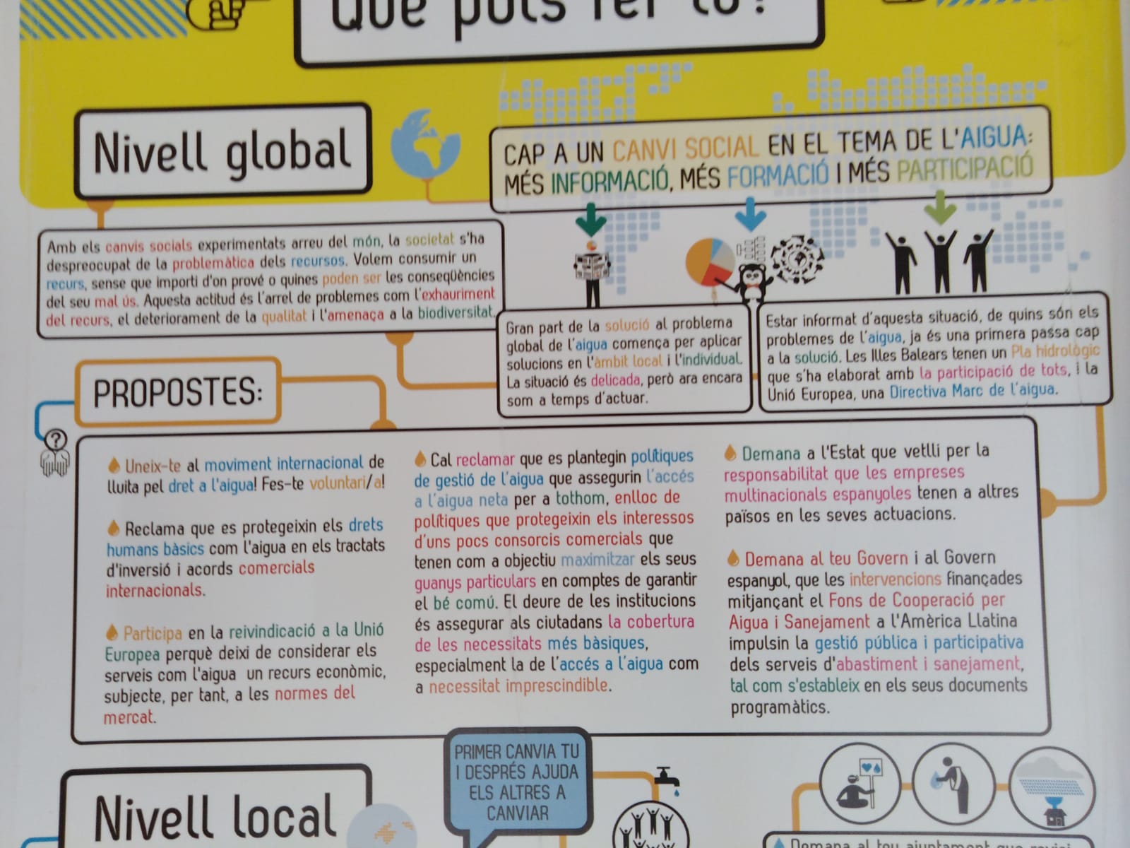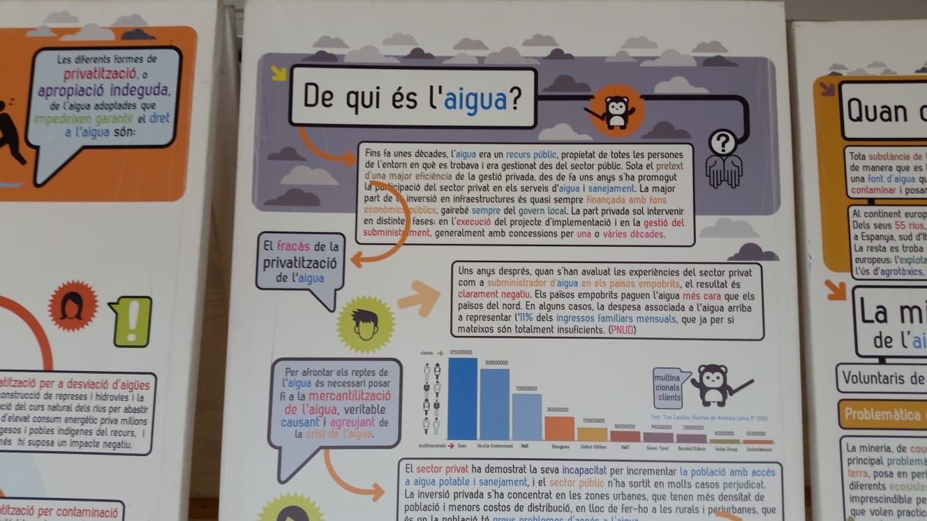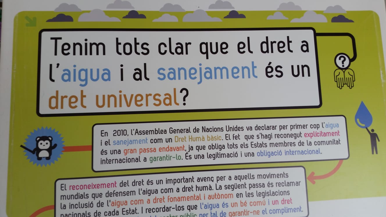 El Fons Mallorquí de Solidaritat ha cedit temporalment a l'institut de Sineu una exposició per tractar la problemàtica actual de l'aigua al món, tant de la perspectiva individual com de la social. La comissió ambiental del centre ha preparat una tasca didàctica per enriquir l'aprenentatge enfocada a l'alumnat de 1r d'ESO.