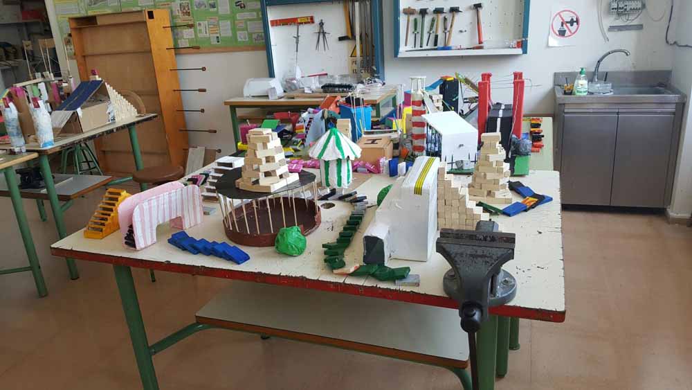 Els alumnes de 2n d'ESO D, E i F han après ha treballar la fusta fent un joc de dominó i un de jenga (torre d'equilibri). També han dissenyat estructures experimentant amb diferents materials: fusta, paper, cartró, metall, plàstic...