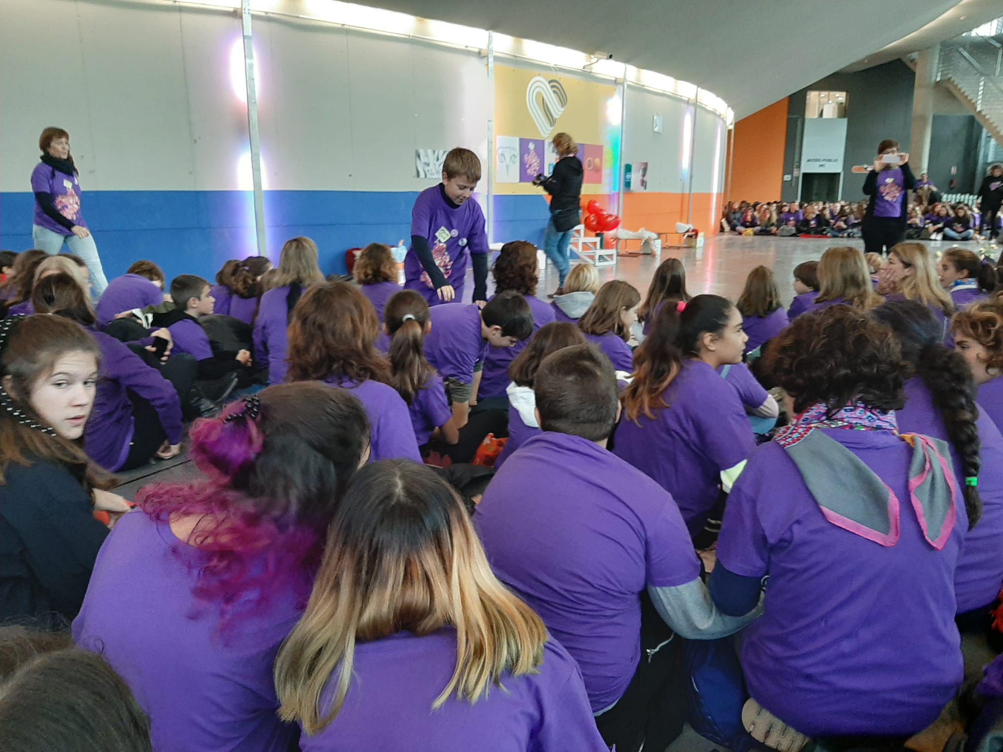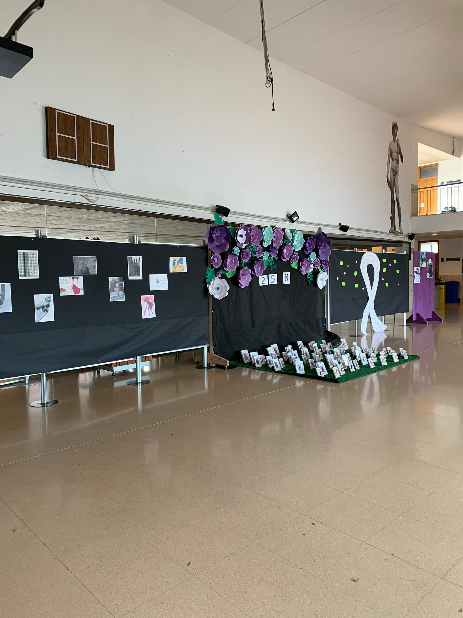 Enguany, gràcies a tot un seguit d’entitats, com a centre, vàrem presentar un projecte amb el títol: 25 raons per dir no. Aquest va consistir en regalar una motxilla a tot l’alumnat de primer cicle d’ESO per tal que hi posassin a dins 25 raons per dir no a les violències masclistes. A les motxilles hi varen posar imatges, objectes, textos, idees... lligats al tema. Amb aquestes motxilles, durant l’esplai, es va crear un gran NO al pati, i aquest és el resultat.