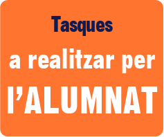- Cada professor ha posat feina/tasques a l’alumnat per fer durant aquests dies. Alguns ja les han donades a l’alumnat i d’altres les aniran enviant. A l'enllaç que teniu a la part de dalt d'aquest text trobareu els documents de tasques, heu de cercar el full corresponent al curs del vostre fill/a i hi trobareu el tipus de feina i el canal de comunicació amb el professorat.