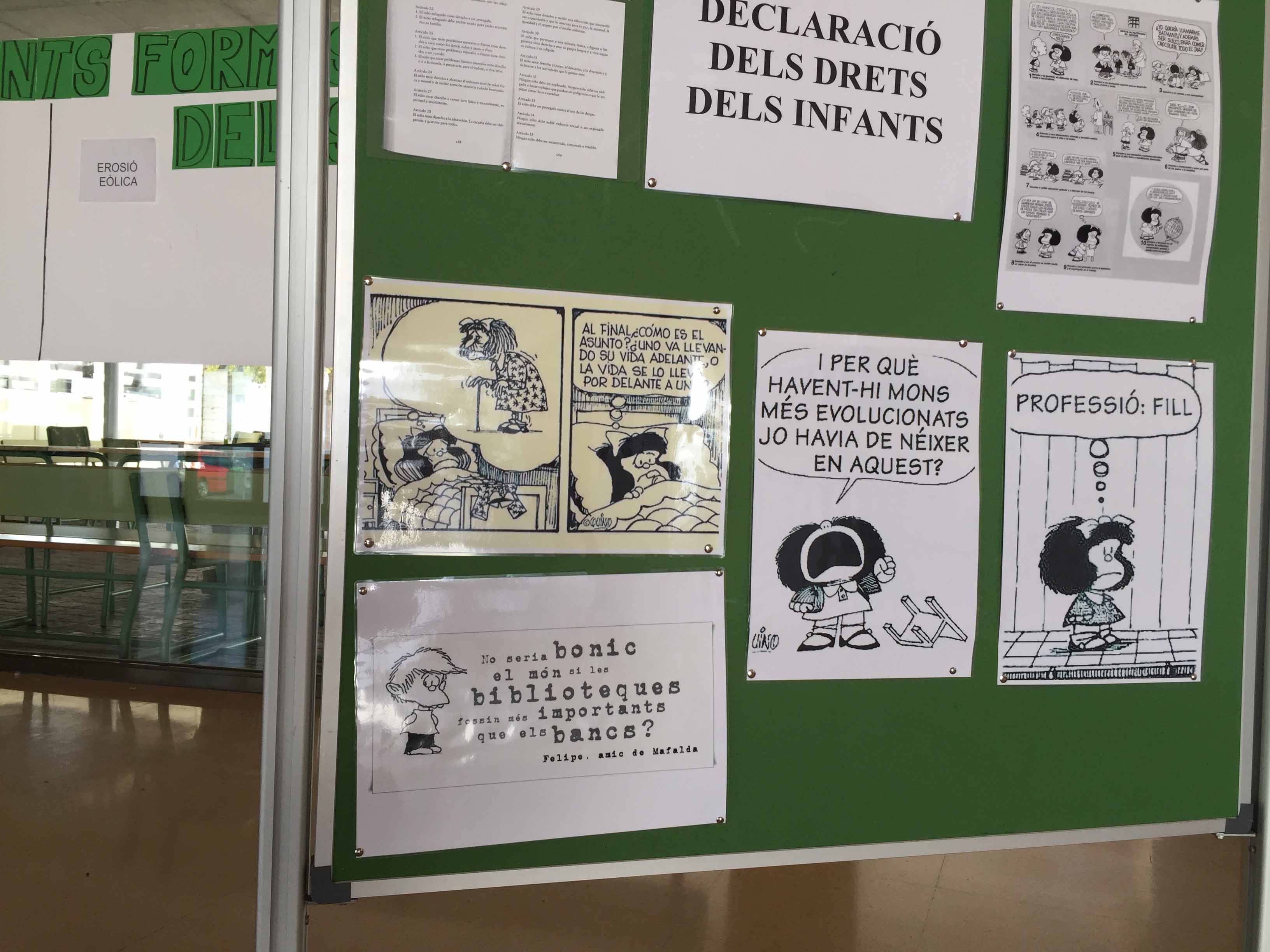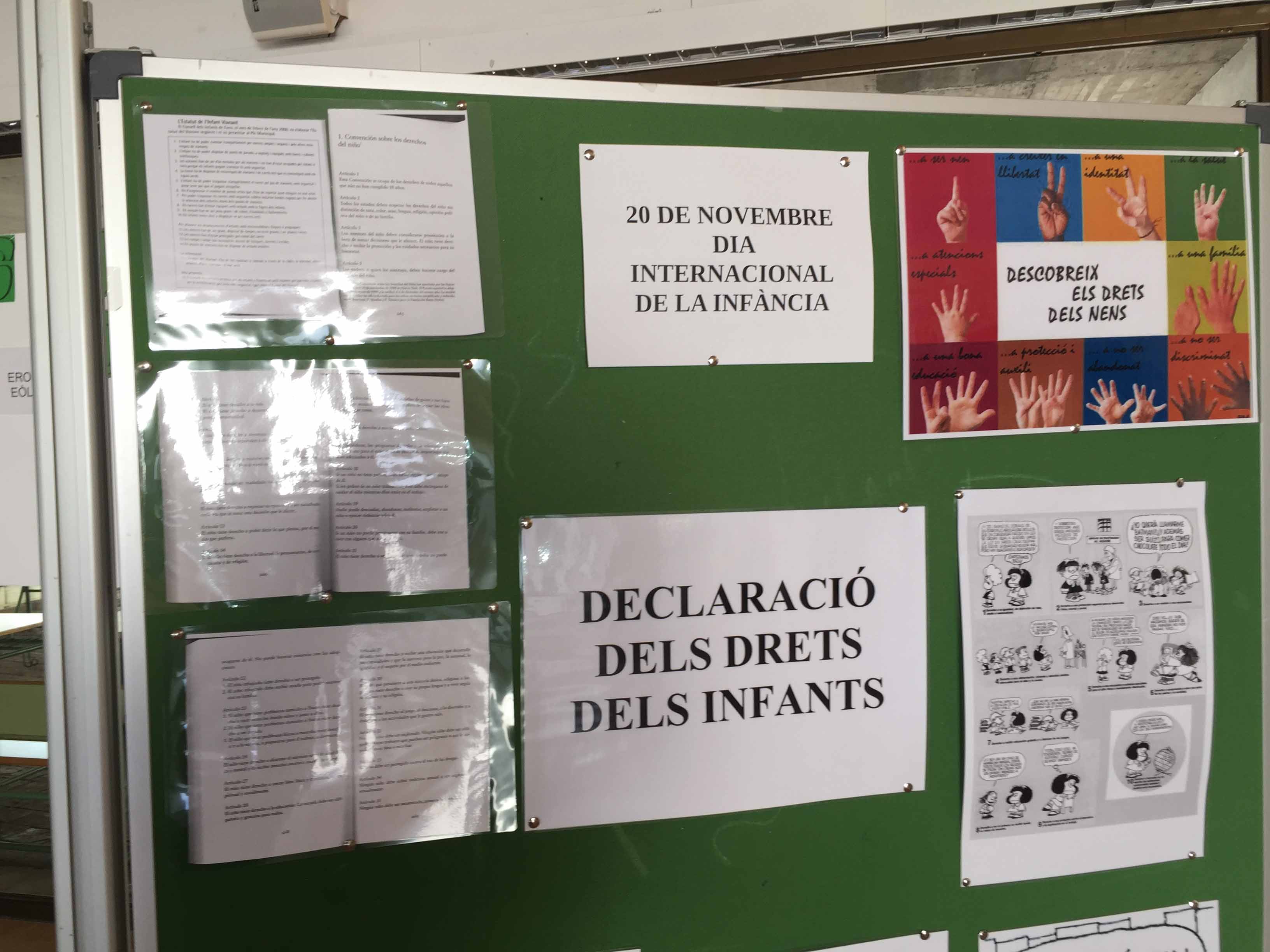El Departament de Filosofia ha organitzat una exposició al hall del centre per recordar la celebració del Dia Internacional dels Drets dels infants el dilluns 20 de novembre. Com és ben sabut, tots els éssers humans tenim els mateixos drets pel simple fet de ser éssers humans però, a la realitat, això no passa i per circumstàncies socials i polítiques ens trobem que molta gent no veu aquests drets reconeguts. Això és especialment greu en el cas dels infants. Drets tan bàsics com els de tenir una identitat, de que hagi gent que tengui cura d'ells, de poder rebre una educació entre molts d'altres hi ha molts d'infants que no els poden gaudir. Per aquest motiu hem volgut recordar quins són aquests drets de la infància i què passa quan no es tenen i quines són les possibilitats que tenim per fer canviar aquesta situació.