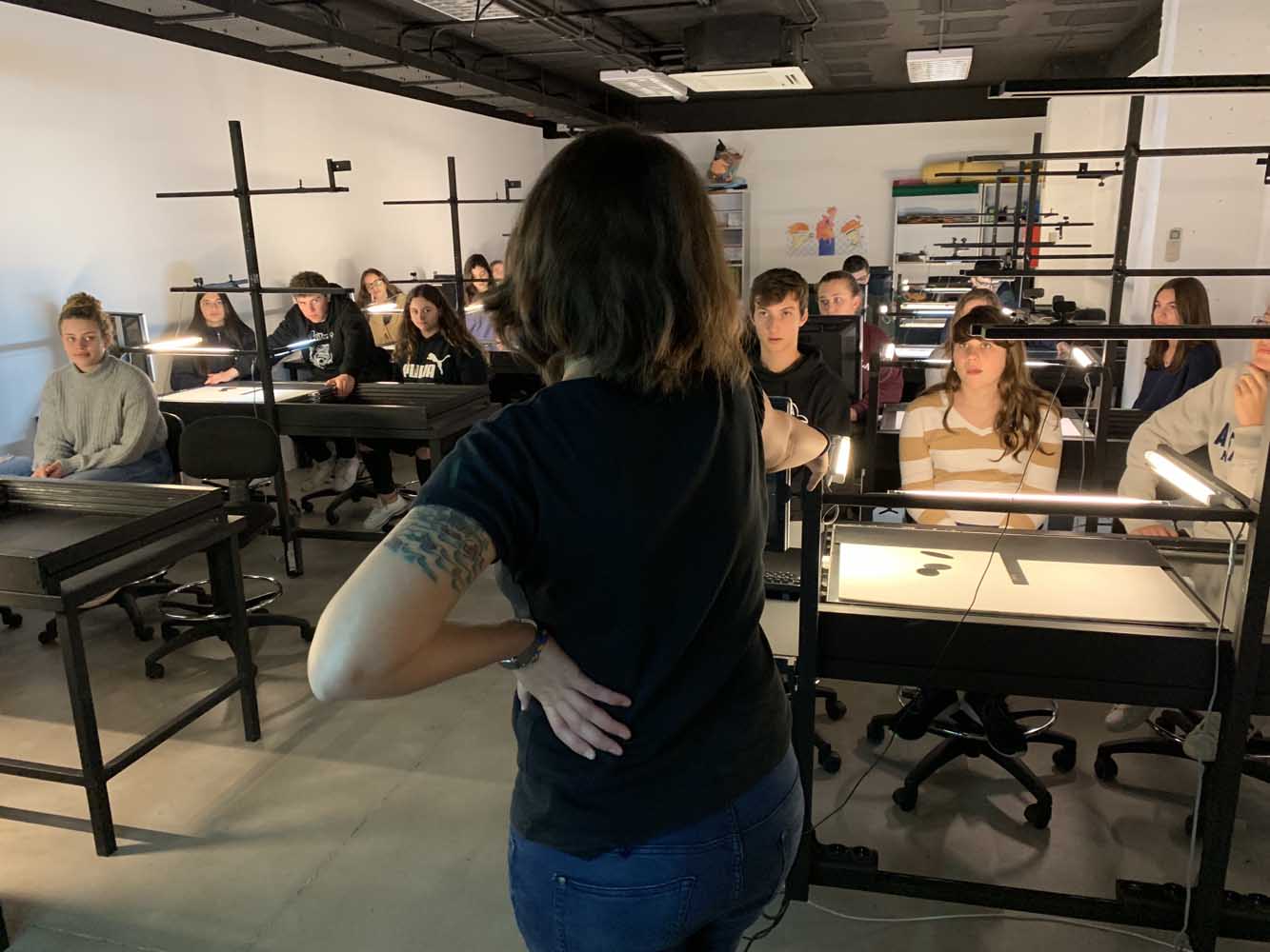 Un total de 36 alumnes que cursen les optatives EPV (4t ESO) i Volum (1r Batxillerat) van poder escoltar una xerrada en relació a la feina de creador de dibuixos animats i videojocs, van recórrer les instal·lacions, visitar una exposició del món de l'animació digital i finalment participar a un interessant taller d'Stop-motion (animació fotograma a fotograma) tot fent servir les eines especialitzades que tenen al centre.
