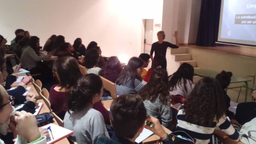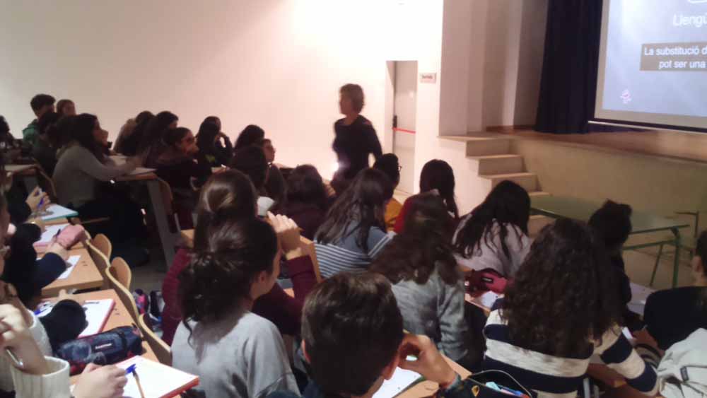 L'alumnat de 1r Batxillerat va poder participar d'un dels tallers en relació a les actituds lingüístiques organitzats per na Gemma Sanginés, experta en el tema i coautora del llibre "Sortir de l'armari lingüístic".