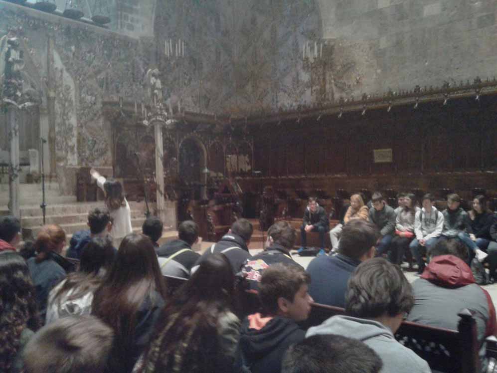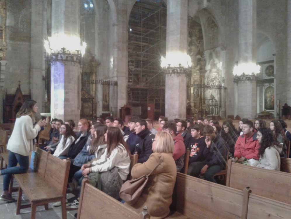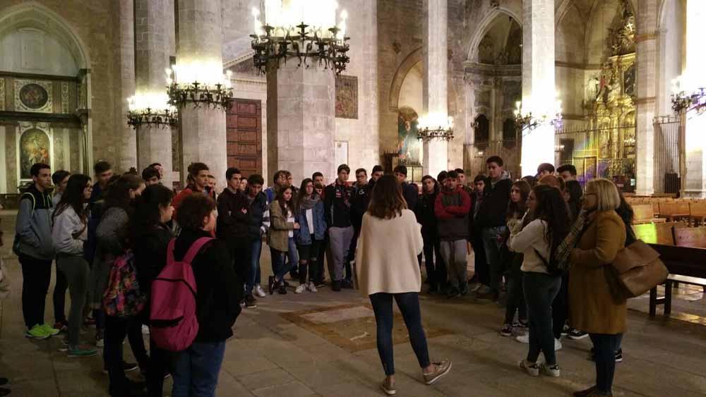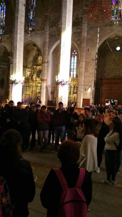 Els alumnes de 4t d'ESO que cursen l'assignatura de Religió visitaren el passat dilluns 20 de Febrer la Catedral on pogueren aprendre tota una varietat de coneixements relacionats amb l'àrea. Identificar les diferents parts com la Capella Reial, Portal Major, Nau central i Capelles laterals, el Claustre, el Portal del Mirador, Sales Capitulars barroca i Capella de la Trinitat foren continguts clau que relacionaren amb l'anàlisi d'obres d'art a partir de l'observació i comparació. Diferents estils artístics com el Modernisme, Contemporani, Gòtic i Barroc, així com els mobles litúrgics foren motiu per poder aprendre un poc més de la nostra Catedral de la Llum, Catedral de la Mar. Poder contemplar les petjades de Gaudí i Barceló formaren part de la nostra visita.