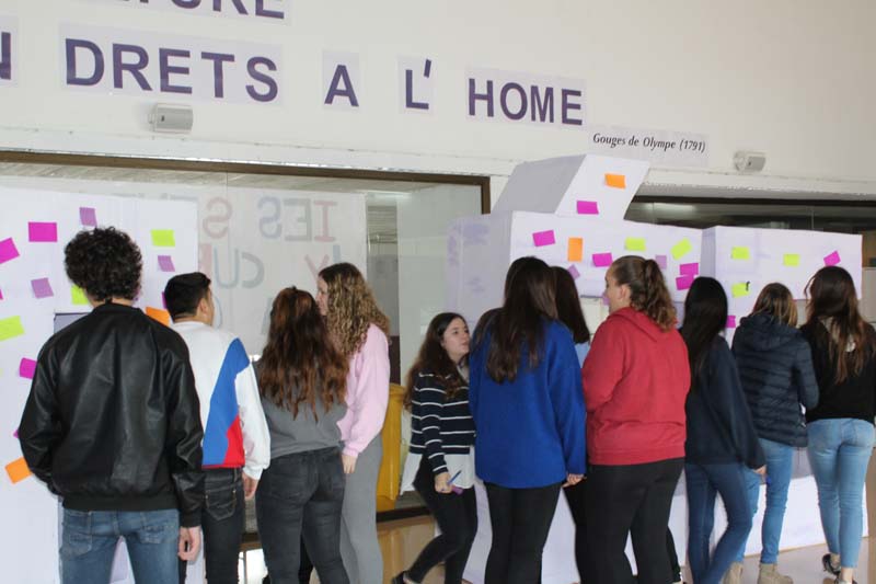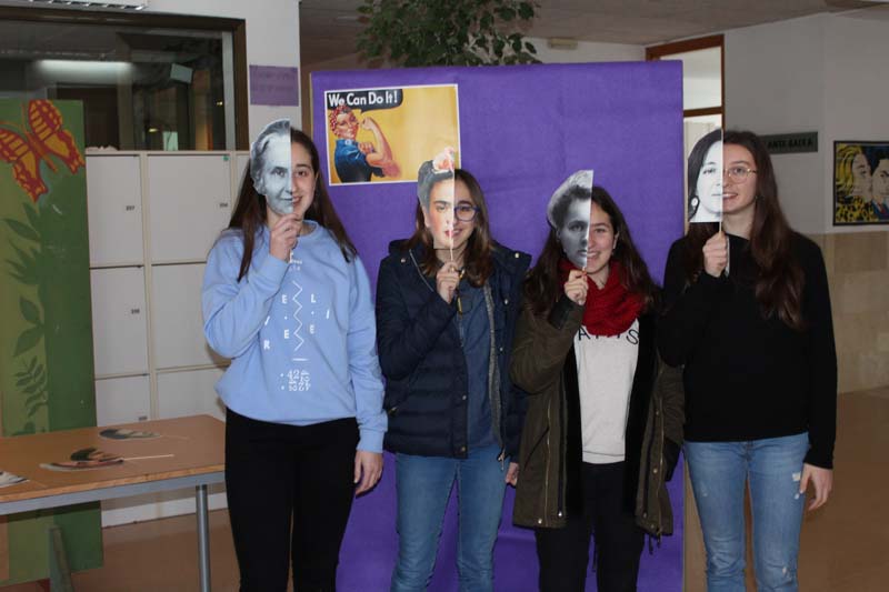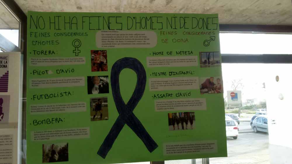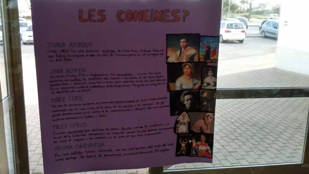 A més d'aquesta exposició, el passat dimecres 7 de març, dues alumnes varen llegir un manifest feminista, i després, entre tots i totes, vàrem acompanyar a na Natalia i en Delfí en la cançó: No és això.