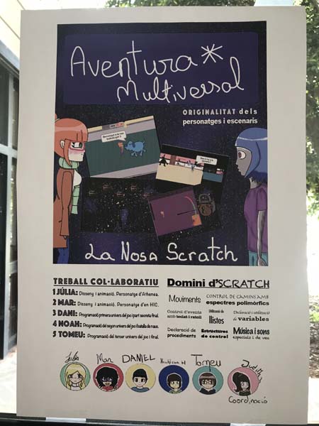 El grup s'ha anomenat "La NOSA Scratch", eren Mar García Vázquez, Julia Karnicka, Daniel García Vázquez, Noah Catalan Rosell i Tomeu Mestre Tugores. Des de principi de curs, el grup amb la coordinació de na Judit Jiménez, han dissenyat i programat un videojoc amb Scratch anomenat "Aventura Multiversal". El resultat del projecte es pot veure a https://scratch.mit.edu/projects/217930881/