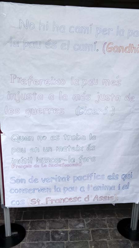 Dilluns dia 30 de gener l'IES Sineu ha celebrat el dia de la Pau. A les 8 del matí els alumnes i professors han trobat un texte breu per llegir a l'aula relacionat amb la pau. Posteriorment, al temps d'esplai s'ha fet una lectura d'un manifest acompanyada per un grup d'alumnes tocant la flauta.